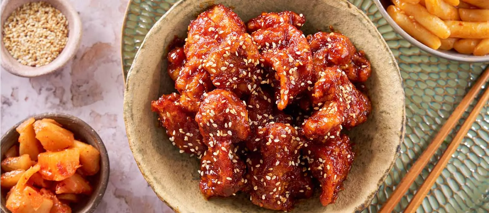 Korealaisen friteeratun kanan juju ei ole kanassa vaan sen kastikkeessa, joka on nopea ja helppo valmistaa. Siihen tarvitaan vain valkosipulia, inkivääriä, fariinisokeria, gochujang-tahnaa ja tietenkin korkealaatuista soijakastiketta kuten Kikkoman luonnollisesti valmistettu soijakastike. Kastikepohjalla on hyvä tehdä kokeiluja: nugettien kanssa se toimii alkupalana, pääruokana tarjottava kana saa siitä lisäpotkua ja muihin friteerattuihin sekä paistettuihin ruokiin kuten ranskalaisiin tai leikkeisiin se tuo eksoottisen twistin.