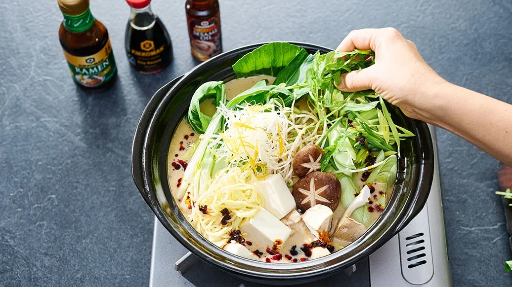 Tämä kipakka hot pot saa potkua sichuaninpippurista sekä chilistä. Tahinista ja soijamaidosta tehty ihanan kermainen liemi maustetaan Kikkoman soijakastikkeella ja seesamiöljyllä, ja pöydässä siihen voi lisätä vielä etikkaa ja chiliöljyä.