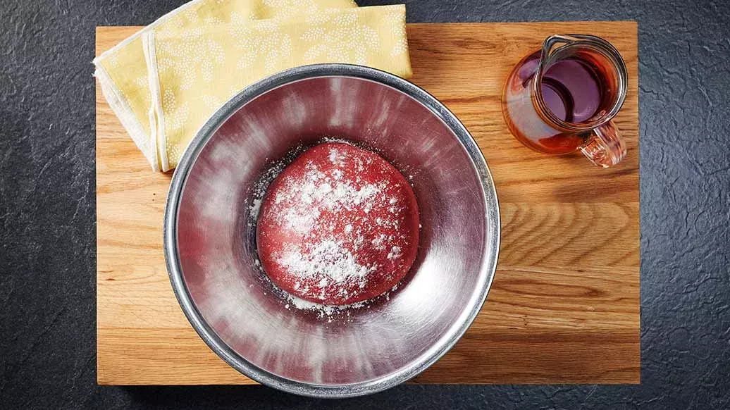 Muotoile taikinasta 4 litteää burgerisämpylää ja anna kohota vielä 20 minuuttia. Esilämmitä uuni 200 °C:seen (kiertoilmauuni 180 °C:seen). Sivele sämpylät munan valkuaisella, ripottele päälle hieman timjamia ja paista uunissa noin 15–20 minuuttia. Anna sämpylöiden jäähtyä.