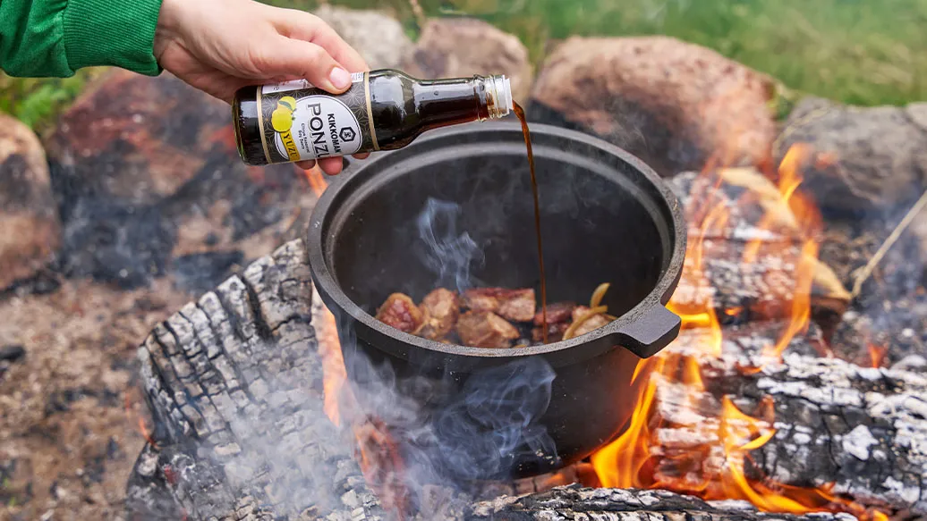 45 minuutin jälkeen lisää pataan 40 ml Kikkoman yuzu ponzu -kastiketta ja sekoita hyvin.