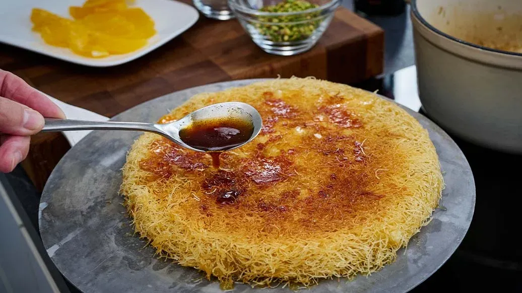 Klassisessa turkkilaisessa jälkiruoassa on rapeaa, lankamaista kadayif-taikinaa ja siirapissa liotettua pehmeää juustoa. Tilkka Kikkoman soijakastiketta tuo umamista syvyyttä ja luo täydellisen tasapainon makean ja suolaisen välille.