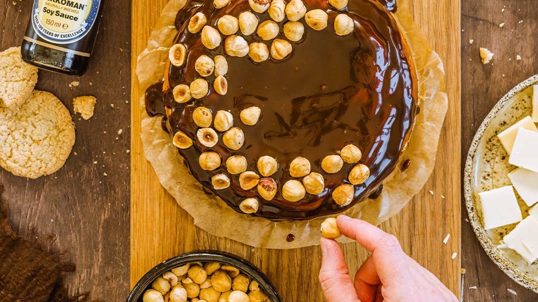 Kuohkea juustokakku ja täysjyväkeksipohja sopivat hyvin yhteen kinuskin kanssa. Kinuskin salainen ainesosa on soijakastike, joka antaa sille häivähdyksen suolaisuutta. Hasselpähkinät tuovat kakkuun täyteläisyyttä ja rapeutta.