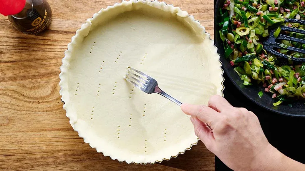 Ranskalainen klassikko modernilla twistillä: purjo, pekoni ja timjami kohtaavat kermaisessa täytteessä, joka on maustettu Kikkomanin soijakastikkeella. Quiche maistuu herkulliselta sekä kylmänä että kuumana.