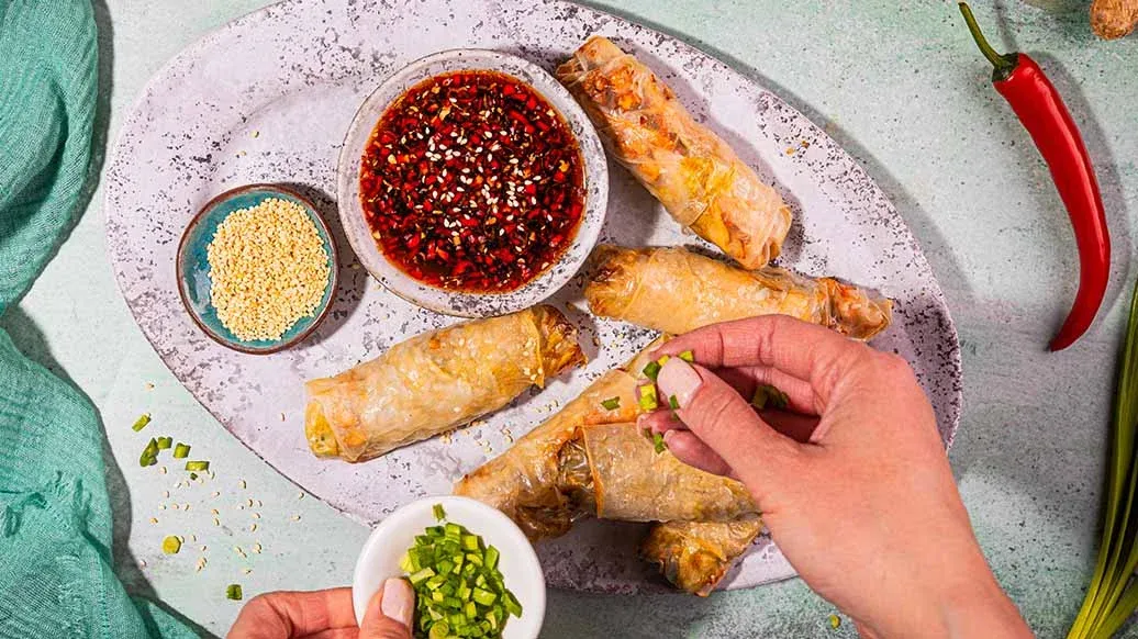Saat lisämakua rulliin pilkkomalla täytteeseen tuoreita yrttejä kuten korianteria, thaibasilikaa tai minttua.