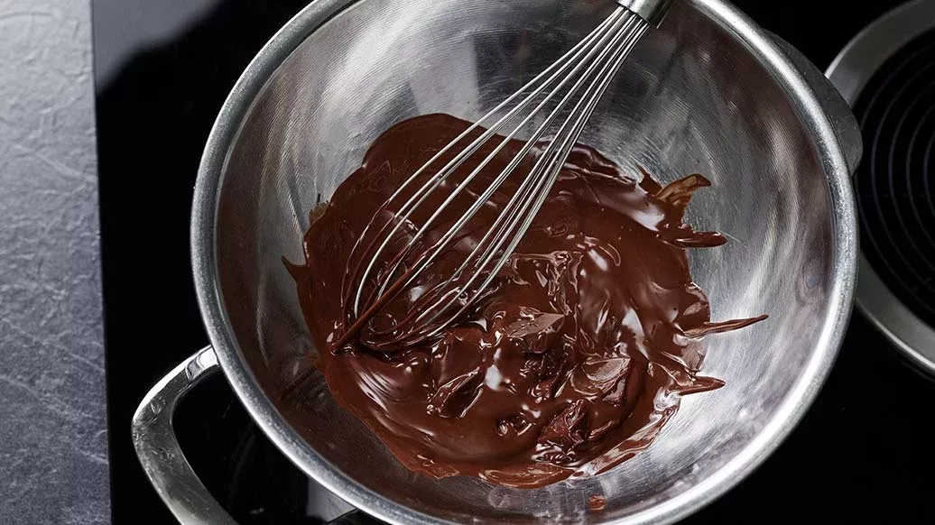 Paloittele suklaa ja sulata vesihauteessa.