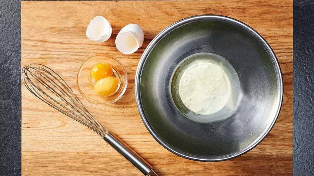 Erottele kananmunankeltuaiset valkuaisista. Laita kahteen keskikokoiseen metallikulhoon. Kulhon, johon valkuaiset laitetaan, on oltava puhdas, jotta valkuaiset vaahtoutuvat.