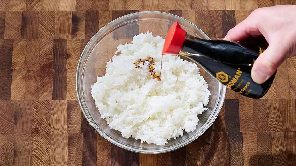 360 g keitettyä riisiä – 2 tl Kikkoman luonnollisesti valmistettu soijakastike