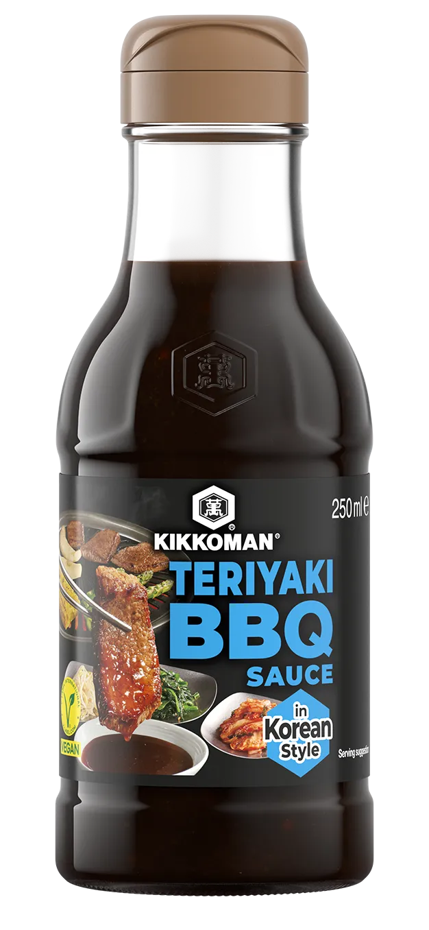 Kikkoman Teriyaki-BBQ-kastike korealaisittain tekee uusien makujen kokeilun helpoksi: soijakastikkeen, inkiväärin ja seesamiöljyn täydellistä tasapainoa täydentää omena, joka tuo kastikkeeseen aitoa korealaista BBQ-makua. Tuloksena on maukas, aromaattinen ja kevyesti hedelmäinen makuelämys, joka on täysin vegaaninen.
